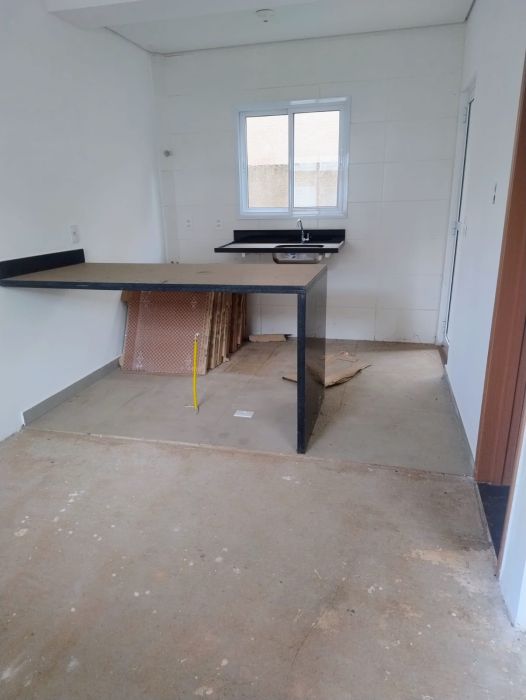 Piso porcelanato no local para ser instalado em toda a unidade.